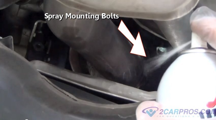 1. You will get a better result if you apply WD40 or an equivalent to the front exhaust flange and tail pipe flange connection bolts, along with the oxygen sensors before you begin. Allow time to pass for the penetrating oil to do its job while dissolving rust.