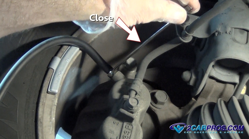 the bleeder and over the wrench. This hose is helpful to avoid fluid from getting