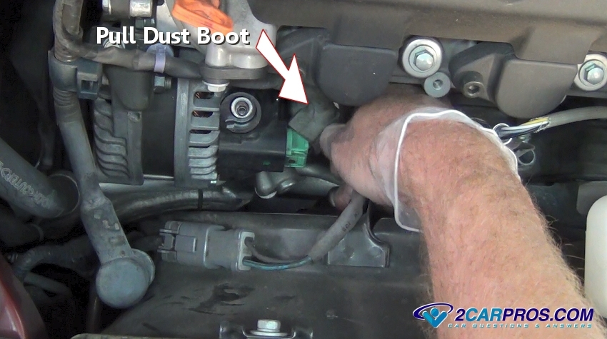 1. Begin by removing the dust boot from the main power terminal to expose the main power wire. If the wiring is difficult to access you will be able to disconnect it once the alternator is loose from the engine. All alternators are designed with a main power cable (large gauge) that is connected directly to the battery or the under hood fuse panel for main charging purposes.
