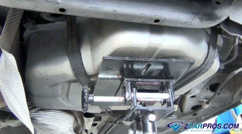 Now the tank will need to be supported by a jack or blocks of wood. A fuel tank