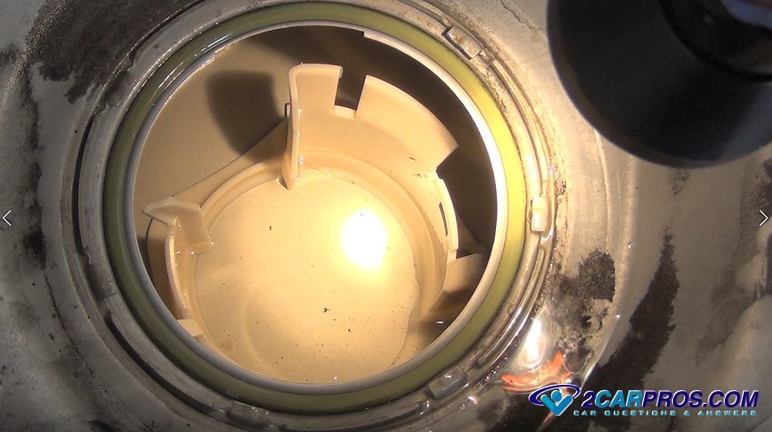 Before installing the new fuel pump use a flashlight to inspect the fuel inside