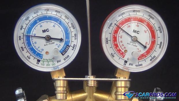 Now observe both high and low side gauges with the valves closed there should be little to no pressure in the system.