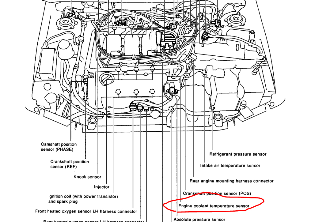 I attached two pics below to show location of the sensor. If you can't get your hands on a scanner, here are the specs which the sensor should meet based on different temps. Basically, you have to check resistance.