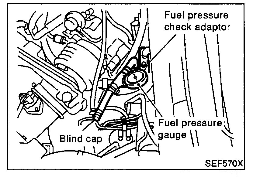 - Do not perform fuel pressure check with system operating. Fuel pressure gauge may indicate false readings.