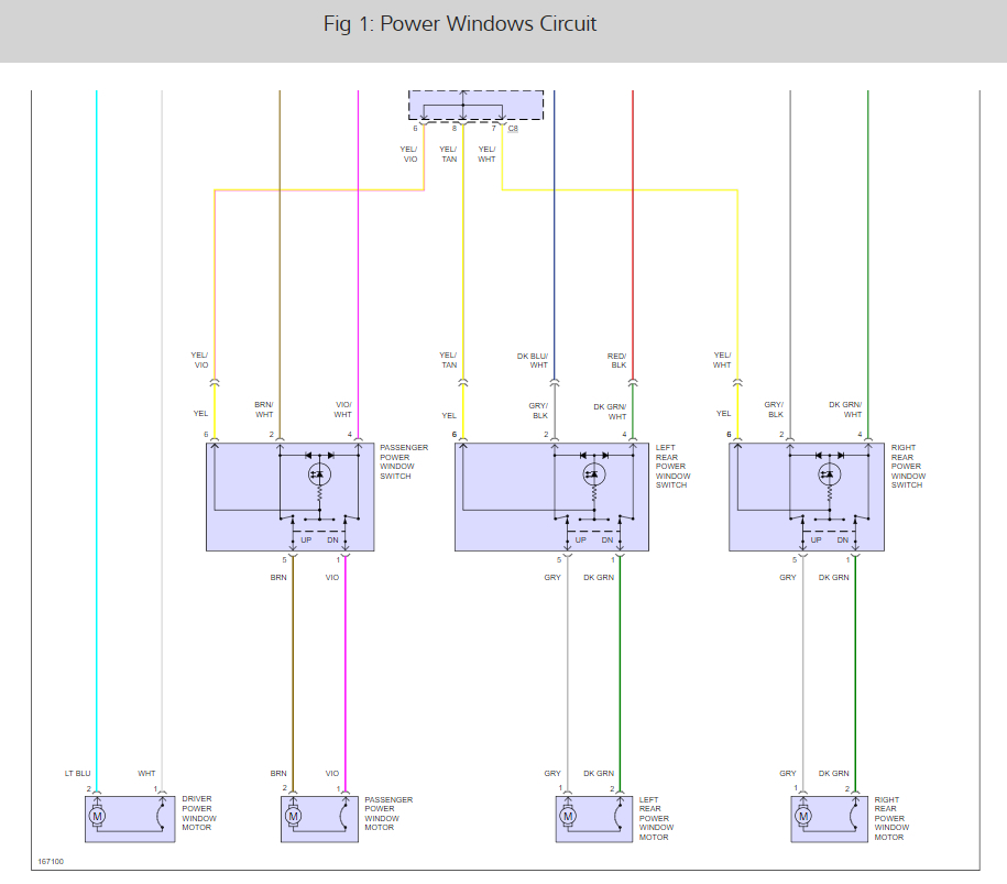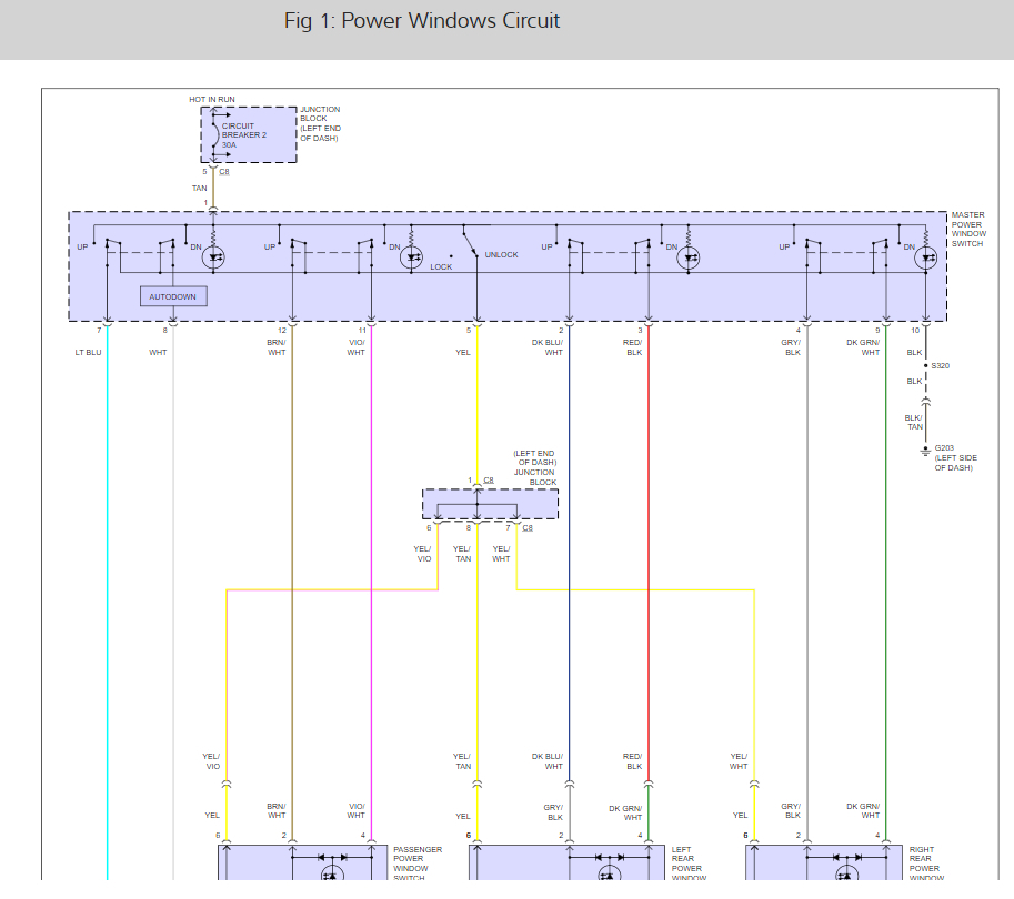 Windows will not work stuck in up position. I have checked all the fuses and relays I can find. I have power going into and out of the switch and window motor. Need help ASAP!