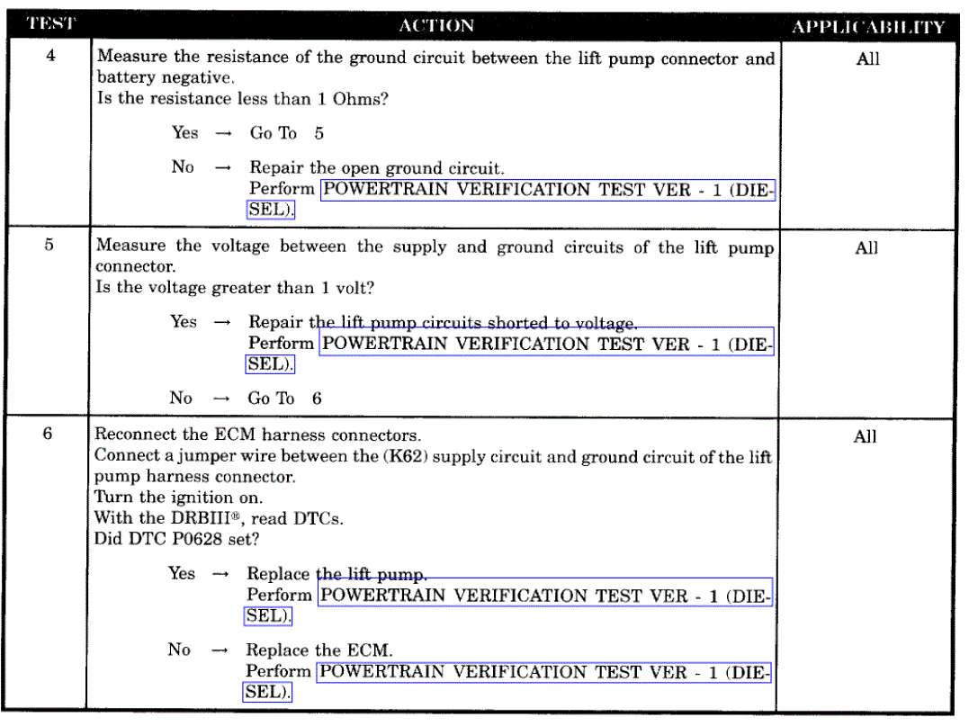I have the truck listed above with a Turbo Diesel Cummins 5.9L. The truck runs and idles fine and may shut off unexpectedly for no reason intermittently. The fuel pump was changed with an OEM part from the dealer, but still happening. Check engine light remains off while engine is running, but it has four codes stored in the computer: P0628, P1652, P1652, and P0628. Two sensors have already been changed as well with no effect. Therefore, the fuel pump and two sensors have been changed with no joy. Troubleshooting for my friend and at this moment I am taking over the job. This is the information I have. I scanned for the OBD2 codes myself. See photos of sensors that have been changed. One is on the fuel rail I believe, and the other is in an engine driven pump I believe. I ran and idled the truck for 32 minutes and could not duplicate the problem. The owner is afraid to go take it for a drive and have it shut off resulting in a tow. I ran the truck back and forth down the street and could not duplicate the problem. Should I clear the codes first and try again? The codes should help pinpoint. I think it is low circuit voltage for the fuel pump. Is this common?