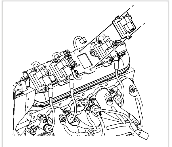 This vehicle has a coil for each cylinder with a small spark pug wire going form the coil to the spark plug. The coils mount on top of the valve cover. I'll post a picture below.