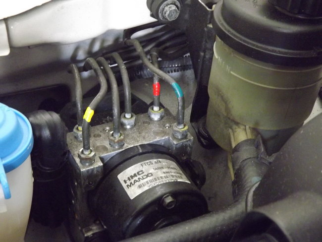 Check the brake hose and line joint for leaks, and tighten if necessary.