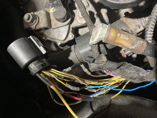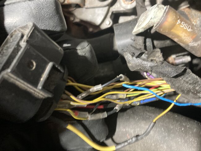 Okay, it looks like someone has done some wiring repairs/modifications to the harness. Does this car have a different transmission than stock?