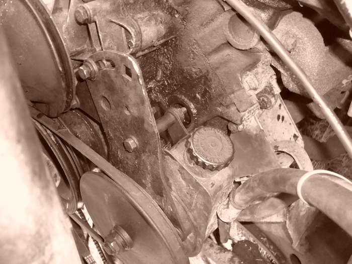 There should be a bolt behind the sp/spump in the picture you are showing. The one withteh slider looks loose but the other one needs to be loosened. Sometimes a metric wrench works better than english wrenches. It's eitehr a 13 or 14 mm also use a 6 sided wrench so it won't slip unless the threads are damaged. Check on the botom as there may be a slider bolt there as well but loosen the one on back. Then replace your alternator belt.