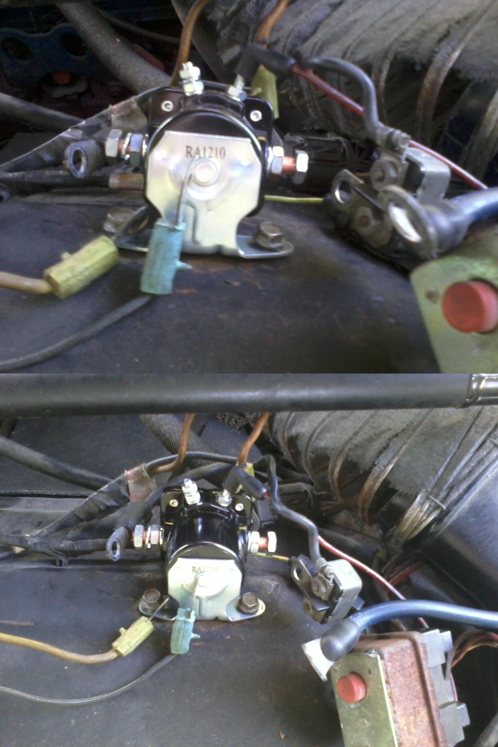 My solenoid on my 74 Gran Torino Elite failed a little while ago. So right before I went out to buy a new one, I was told to go get the old broken one from the car. I have no mechanical experience whatsoever. So I simply went out to the car and un-bolted the solenoid from the vehicle. I was unaware that I was supposed to mark what side each of the wires were supposed to go on. So now I have a new solenoid in my car, but I have no idea what wires go on what side of the solenoid. I have winged it a few times now with some not so positive results. At one point without the key in the ignition or anything my car just started trying to turn over when I attached the battery back to the solenoid, and something started smoking. Another time with a different combination of wires on each side I was able to turn the car over myself but it wouldn't actually start. And the last time My buddy sprayed some starting fluid, and I attempted turning my car over. It continued turning over when I removed the keys from the ignition and I ended up having to disconnect the battery to get it to stop. So my question is, What wires go on which sides of the solenoid?