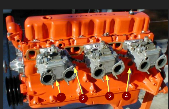Please see the pictures below. The first is of a 250 (4.1L) and the second is a 230 Chevrolet engine. It only has 3 but it is a much better picture.