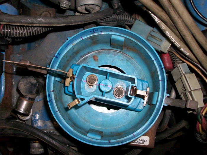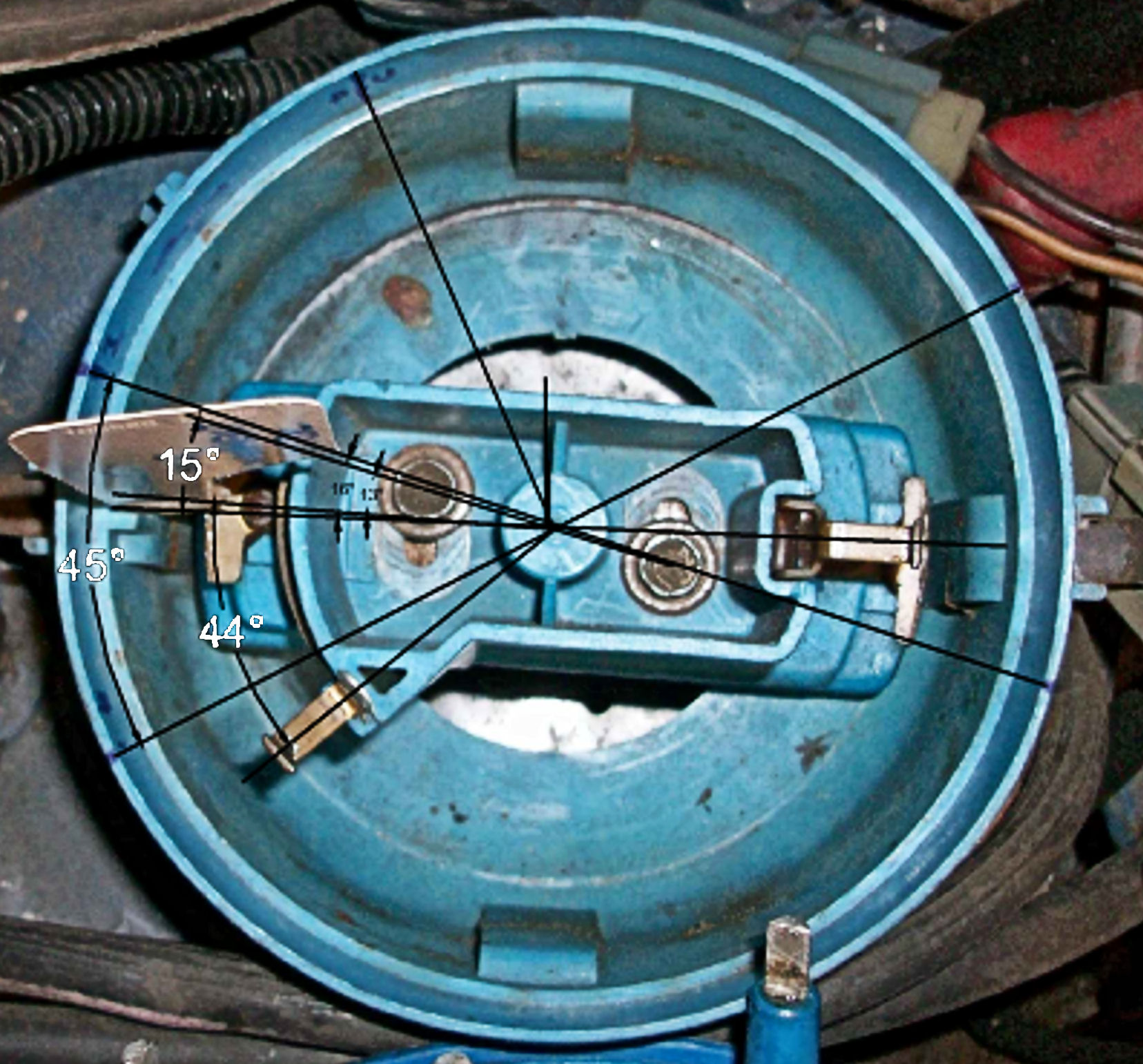 I have not received any convincing definitive answers in posting this same question on multiple forums. I've got plenty of reccomendations to try to sell the car as-is non-running, keep cranking it trying to start it with it as-is (with carb issue as well requiring this to be correct first), or to simply replace the ignition system with another type (perhaps with that magic money from the tree in thier back yard). Yet no, in all this time there is still no convincing answer or explanation for the misalignment seen at the distributor.