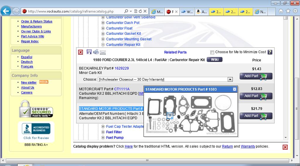 Heres the number thats supposed to fit you can find it at www. Rockauto. Com STANDARD MOTOR PRODUCTS Part # 1593