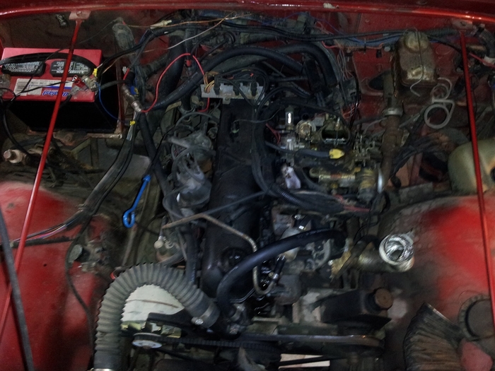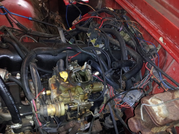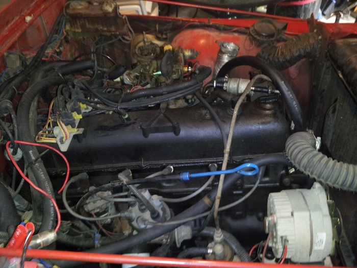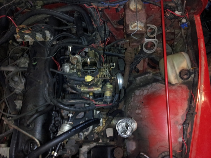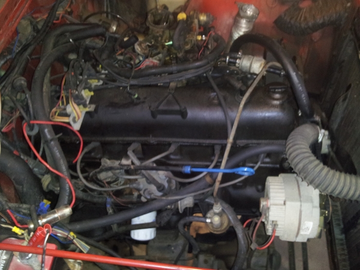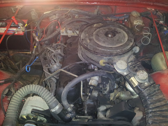 OUTSIDE----REMOVE THE BREATHER---LAY THE HOOD ON THE WINDSHIELD FRAME GET ME PICS OF THE LEFT AND RIGHT SIDES OF THE ENGINE----STAND ON THE BUMPER AND GET ME A GOOD TOP VIEW (CAMERA HELD CENTER OF ENGINE)