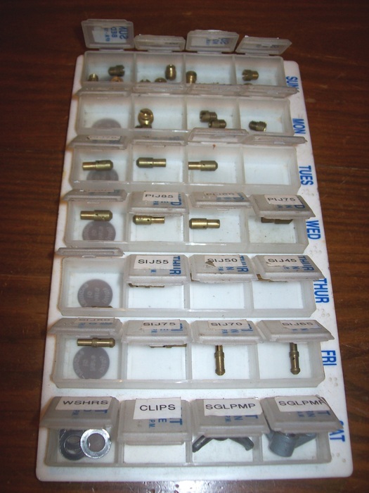 THE KICKER HERE IS "IN-BETWEEN" SORTA-KINDA LOOKS ALL THE SAME (AT LEAST TO ME). THIS IS WHERE ONE MUST SELECT THE THE BEST JET----THERE ARE ALSO "AIR BLEEDS" WHICH IN COMBINATION WITH A JET AND EMULSION TUBES, TURNS THE AIR/FUEL MIX INTO, WELL, BASICALLY A "FOG", FOR LACK OF A BETTER TERMALL OF THIS IS A COMPLICATED BREW