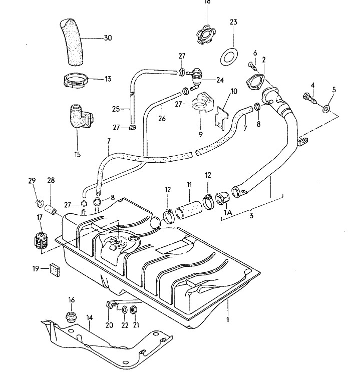 A problem with #24 (or the hoses) can cause pressure to build (incorrect venting of the tank).
