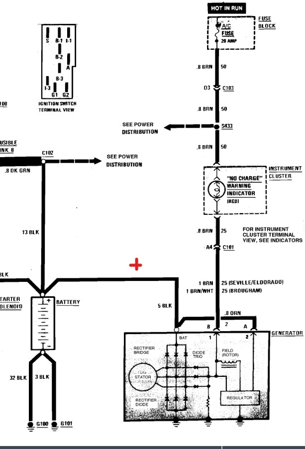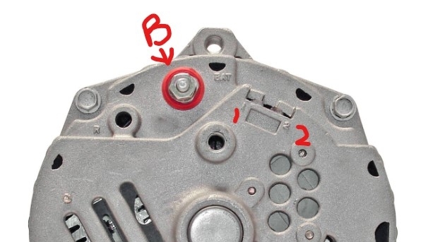 I have the car listed above which needed a new alternator. I pulled the old one and installed the new one. On the old alternator it has a two spade/wire clip that pushes on and a red threaded stud and nut with two wires on it one of which runs directly from the pigtail of the clip mentioned above and the other runs to the battery positive terminal. The new alternator is exactly the same as the original. The only difference is the red threaded stud on the new one is black. I got the alternator installed and hooked up the wires in the exact orientation they came off of the original and fired up the car. The alternator is not charging. None of the wires associated with the alternator are original. So, my question is where are these wires supposed to come from?