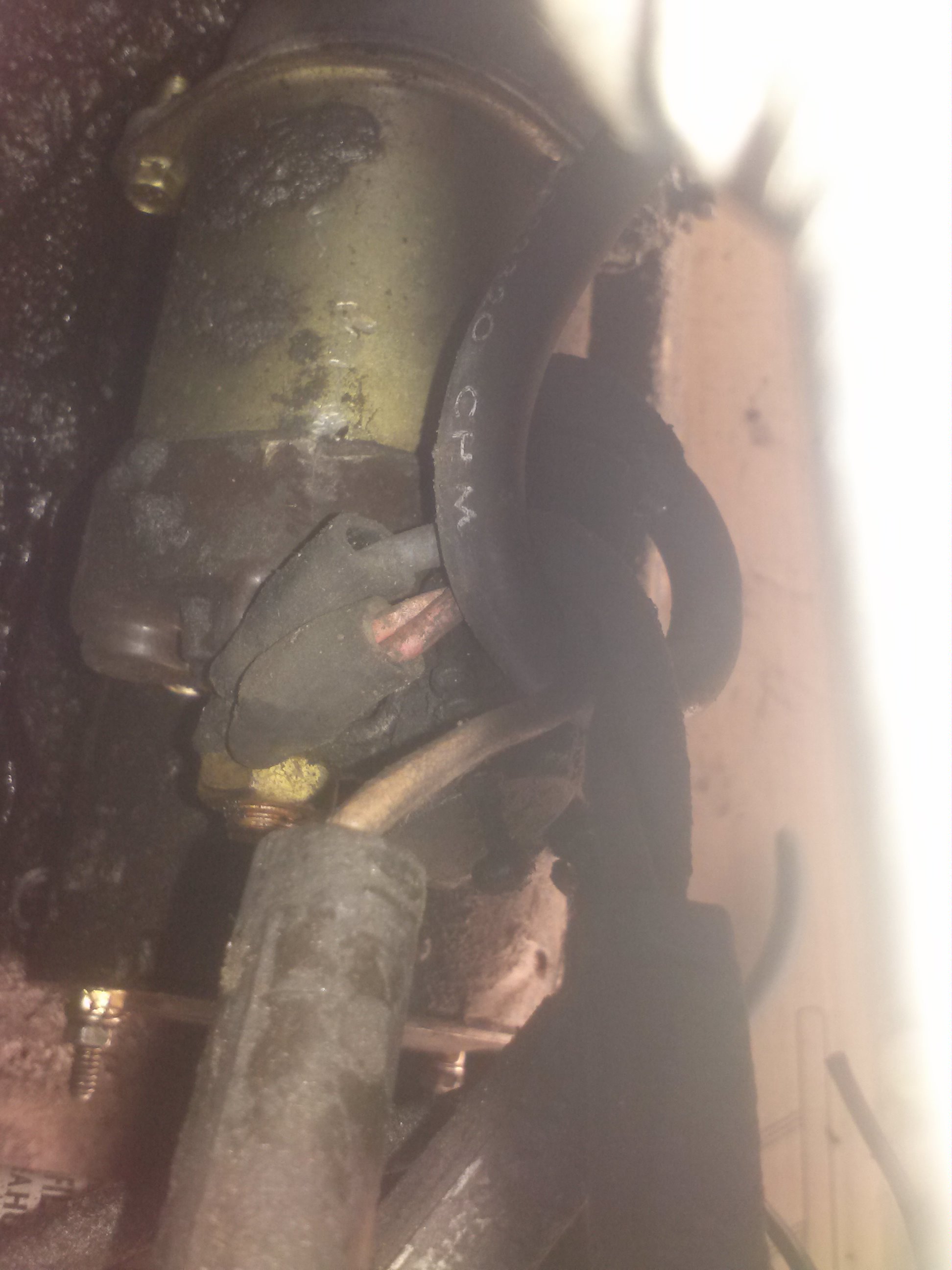 Basically what are the wires to and what is the problem, no crank but battery is ok. I dont know if this helps but the small engine on the starter looks completely connected. The loose nuts were on the larger peice. Check engine light is on and thats about all I can think of. Everything else runs great usually.