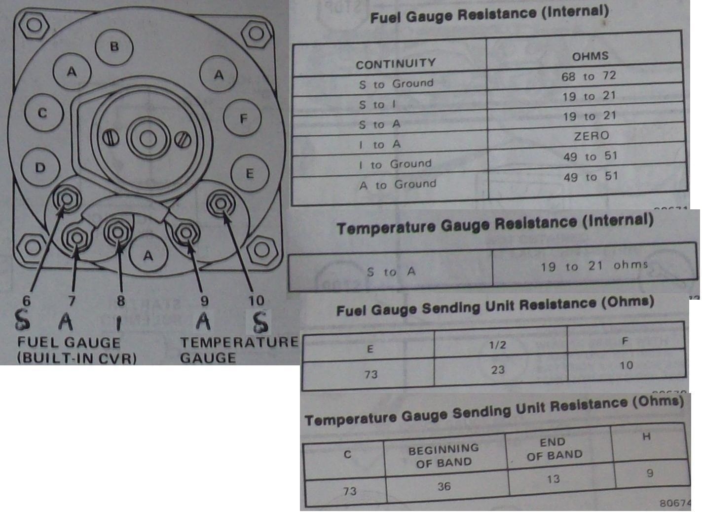 2nd diagram upper right side displays the wiring to the speedometer gauges. The rest of this diagram is for a 1979 some may not apply to your year. The dashes I place on wires denotes that it has a tracer stripe the stripe colors were not denoted in the legend