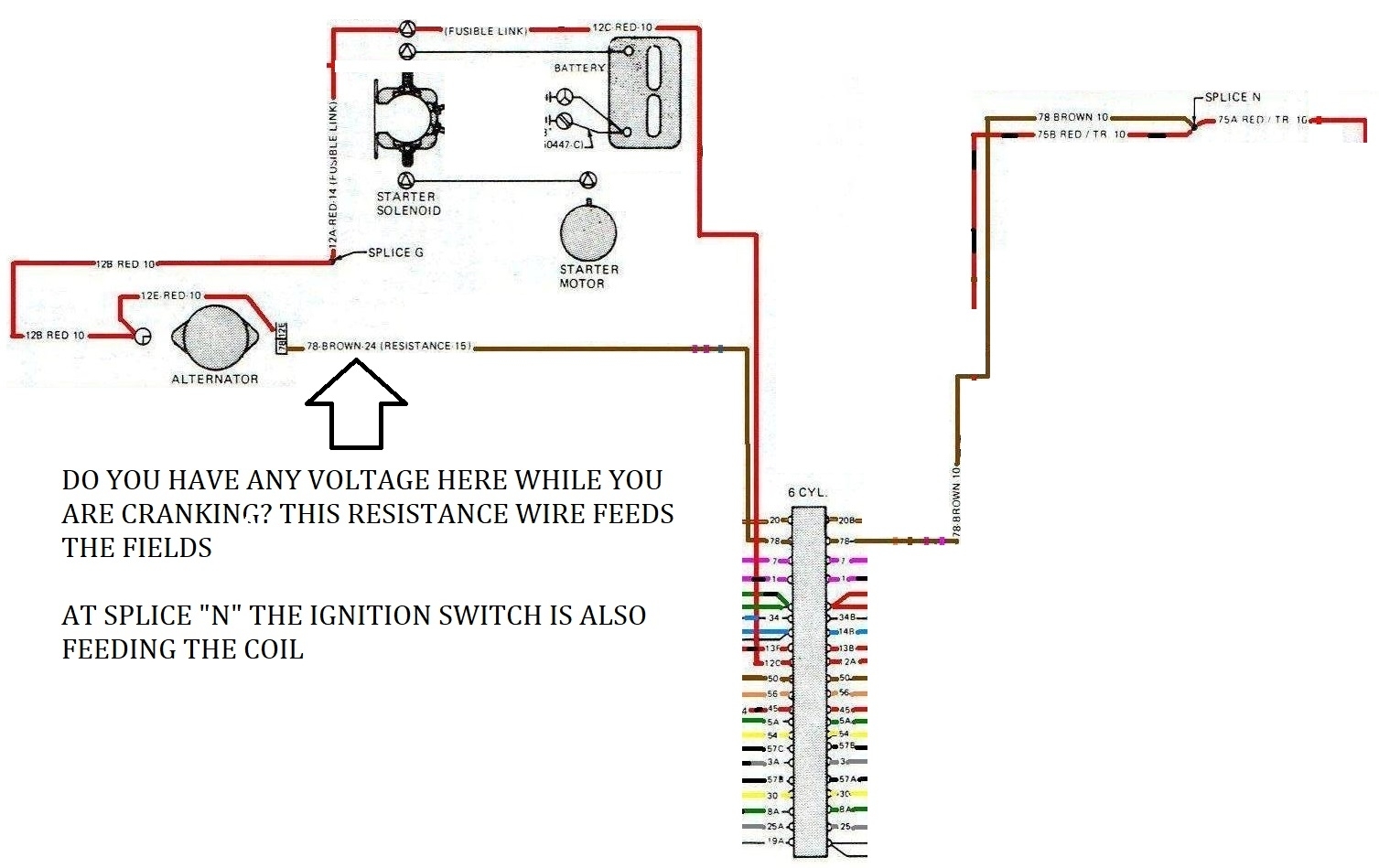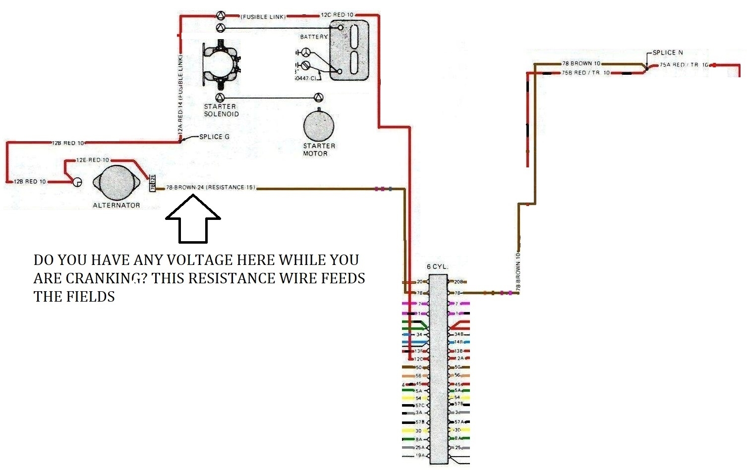I also replaced a piece of fusible link between the starter solenoid and the alternator that had blown. I replaced it with a piece of 14 gauge fusible link. Let me know if there's any other information you need.