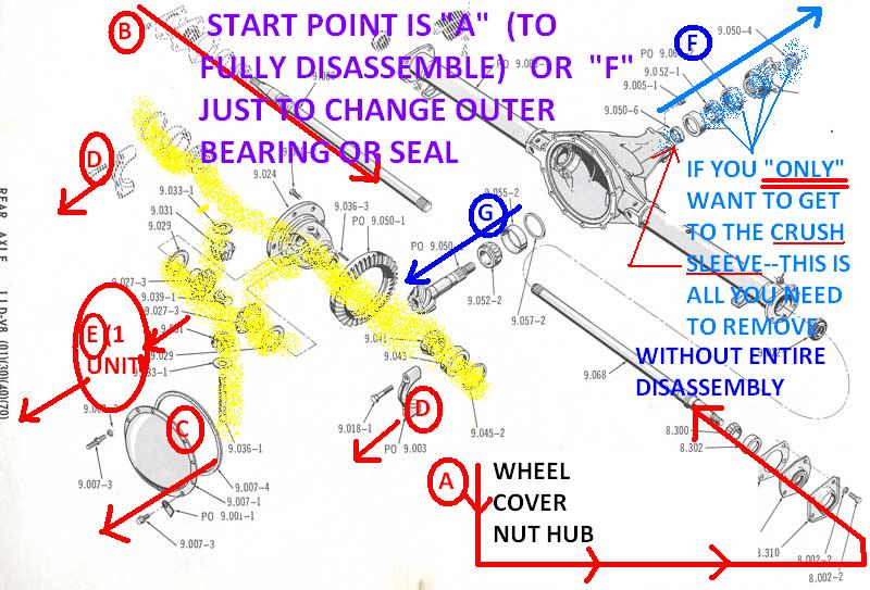 SO WE'RE LOOKIN' AT RING AND PINION--ITS BEARINGS AND CRUSH SLEEVE..........SIDE BEARINGS.....CARRIER OR NOT????.....DIFF JUICE DEPENDING ON WHAT SYSTEM YOU USE.......AND OF COURSE "SHIMS"