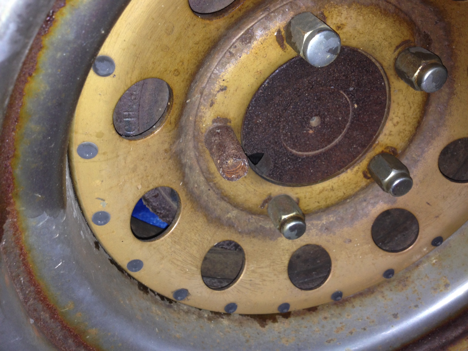 TAKING THE OLD ORIGINAL 2 PC AXLES OUT (IF THAT'S WHAT YOU HAVE) THEY ARE IDENTIFIED BY HAVING A BEARING CAP LOOKING COVER OVER A BIG NUT.....THIS IS CENTER OF THE FLANGE W/ THE WHEEL REMOVED. A AFTERMARKET 1 PC AXLE IS MOSTLY A FLAT FLANGE W/ NO COVER.