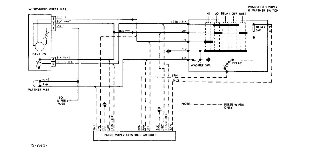 Disconnect wiring from termin als 4 and 5, replace park switch assembly is motor stops. If motor still runs, remove wires from terminals 1--2-- and 3, connect volt to terminal 1 only, if motor does not run, it indicates a ground in wires from wiper motor to terminal 2 or 3 at dash switch. If it runs, check for internal ground at high or low brushes.