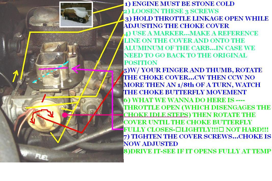 Lets also change the pcv to a 1979---it sucks in less air volume......you will have to most likely have to re-adjust your mix screw to compensate (this will also affect your idle speed--so adj it too!)......use your dwell/ tach and max out your needle.......i think i covered how to do this in the "stalls when hot" link