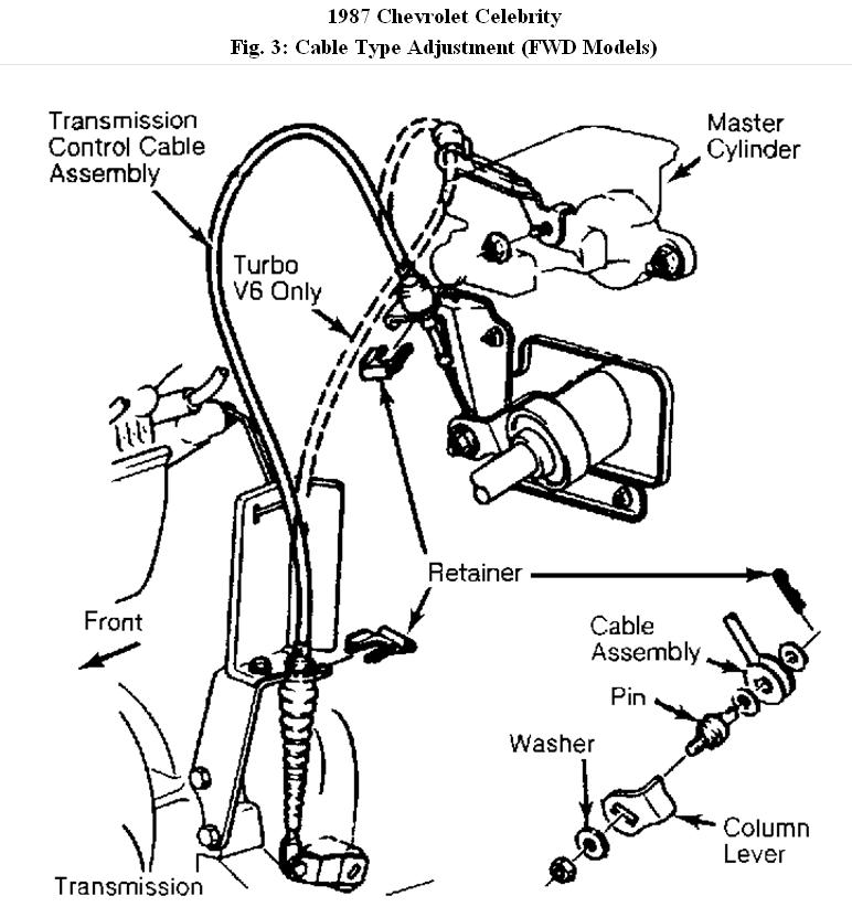Thank you, but this doe not show how it has to be done on my Chevy Celebrity "automatic" the cable goes to the wheel to the gear lever