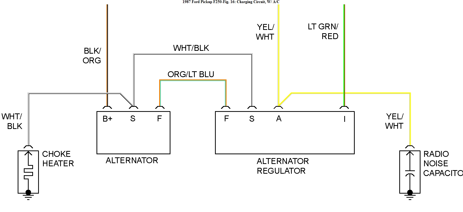 I HAVE A WHITE WIRE THATS HANGING DOWN FROM THE ALTERNATER WITH A SNAP PLUG ON THE END AND I DONT NO WHERE IT GOES AND MY TRUCK ISN'T CHARGING ITS A 87 FORD F250 WITH THE DOUBBLE PLUG NOT THE DUBBLE WIRE WHERE DOES THE WIRE GO