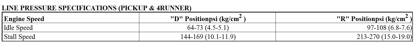 Refer to the appropriate table under LINE PRESSURE SPECIFICATIONS.
