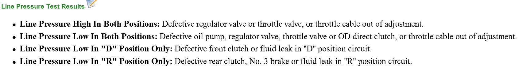 4. Repeat test procedure in "R" position. If line pressures are not as specified, check