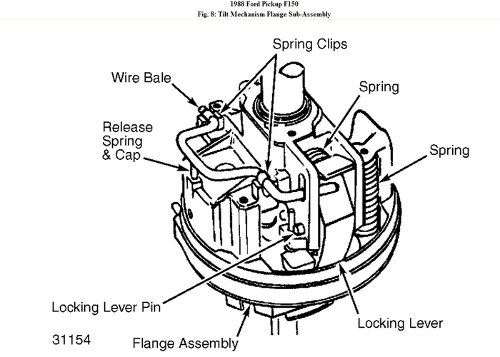 1. Remove steering column from vehicle. Remove spring clips holding wire bale. Lift off wire