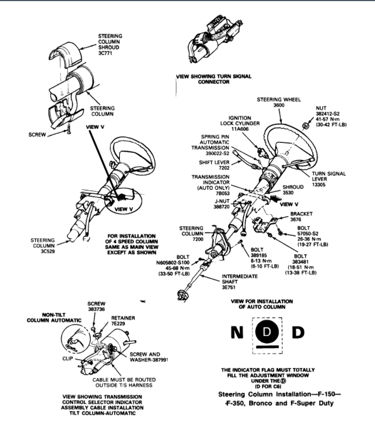 I have a 1988 ford f-150, 4.9 v-6, with a/t. I had to replace the starter switch that is mounted on the steering column. My manual said to remove the steering coloum shroud, lower the column, and r/r the switch. After doing this, I re-assembled, but now the gear shift selector will only go int the R and the N position. It will not move to the forward gears. It seems like something is blocking it. Any help would be appreciated. Thanks.