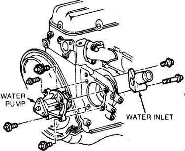 Clean engine block and water pump sealing surfaces, then apply a 3/32 inch of RTV sealant to sealing surfaces. While RTV sealant is still wet, install water pump. Tighten attaching bolts finger tight.