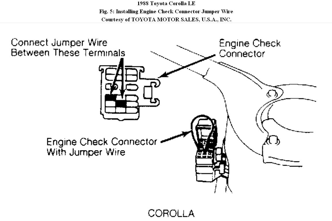 Place jumper wire across "TE1" (or "T") and "E1" terminals in engine check connector.