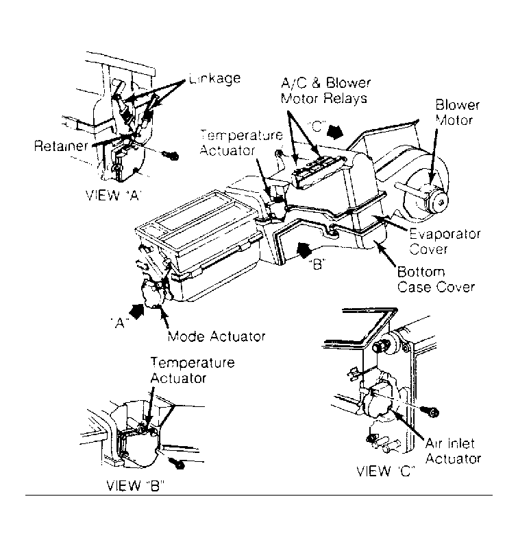 Check actuator remove glove box see diagram find air inlet actuator turn AC to MAX actuator should close door