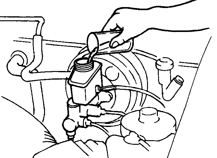 2. Fill the reserve tank with brake fluid. Be sure that the reserve tank is at least half full at all times during the air bleeding process.