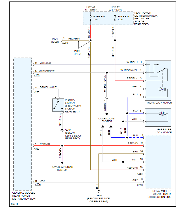 I would check fuses # f30 and f31 in the fuse panel near the rear seat. Here is a guide to help test for power and the trunk wiring diagrams so you can see how it works: