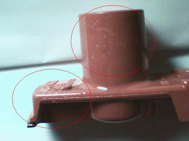 I would like to know if those defects(that can be seen in my photos) might caused ignition problems. The Blue arrows show defects on the body. The Round red cycles show a sort of many tiny transparent bubbles on the upper layer of the plastic. Besides that I don't see any deep cracks on it.