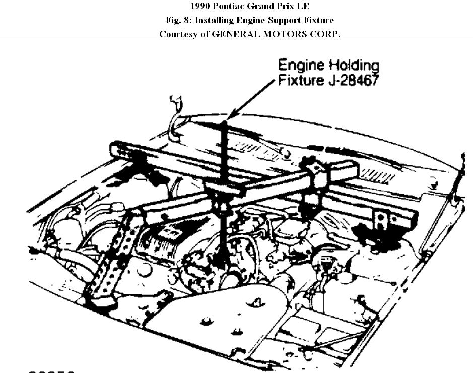 1. Disconnect negative battery cable. Install Engine Holding Fixture (J-28467-A) and Support (J-36462). See Fig. 8. Remove air cleaner housing and intake tube. Remove slave cylinder from transaxle.