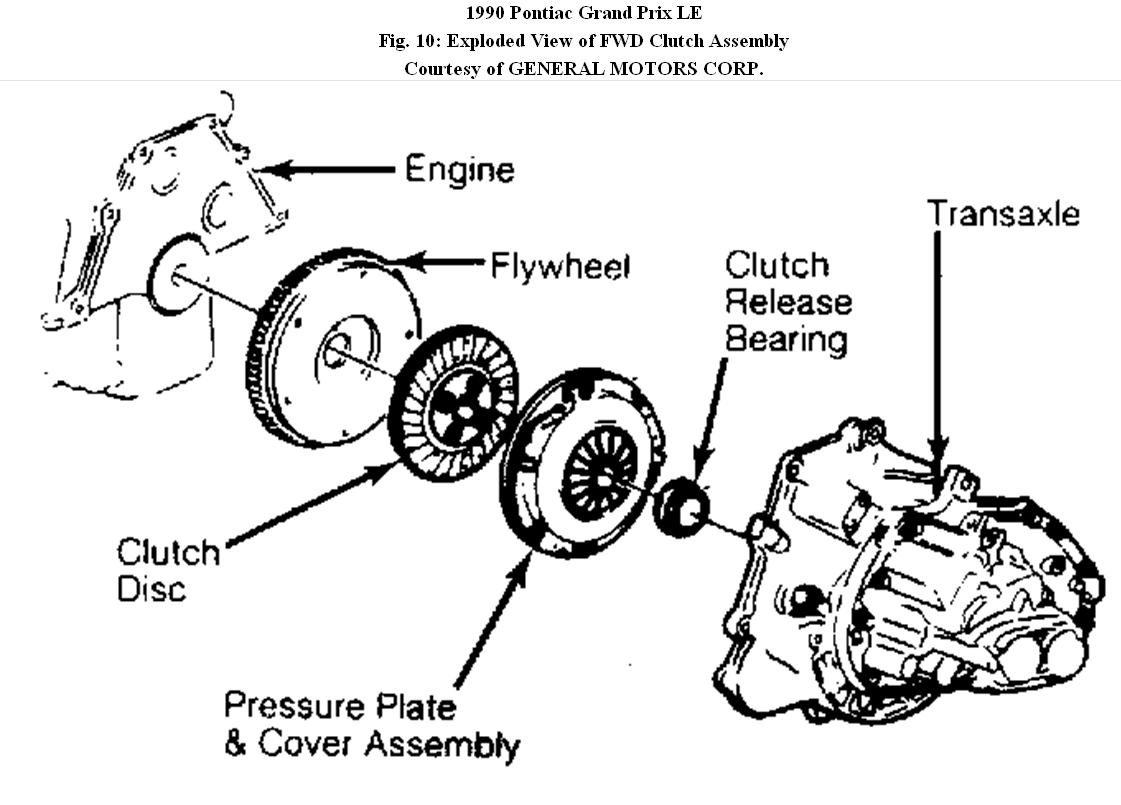 9. Index mark pressure plate to flywheel for reassembly reference. Using a crisscross sequence. Loosen attaching bolts one turn at a time until pressure plate spring tension is relieved. Remove clutch disc and pressure plate. See Fig. 10.