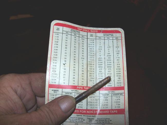 Once the tap has gone in a few turns, back it off a quarter turn to break off any chips, then go another quarter to half turn. Keep doing this until you feel the resistance suddenly increase a lot. That means you're but ting up against the chips that fell to the bottom of the hole. Unscrew the tap and clean the chips out again, then run the tap down once more. You'll feel the tap get tight just like a bolt gets tight. Don't force it. I can't remember if your intake manifold is made from aluminum or cast iron. If it's aluminum, it will tap very easily, but it will be easy to peel the new threads off too if you force the tap once it becomes tight. Blow the chips out again so the bolt won't but t up against them.