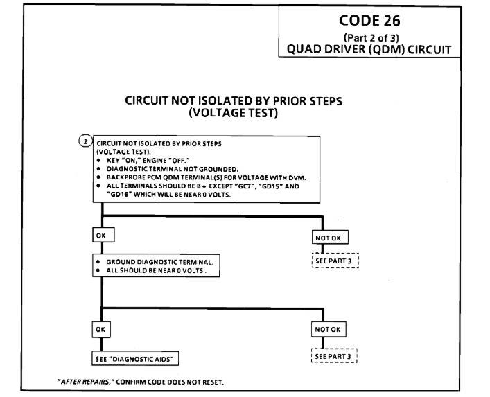 1. The PCM does not know which controlled circuit caused the Code 26 so this chart will go through each of the circuits to determine which is at fault. This test checks the "SERVICE ENGINE SOON" light driver and the "SERVICE ENGINE SOON" light circuit.