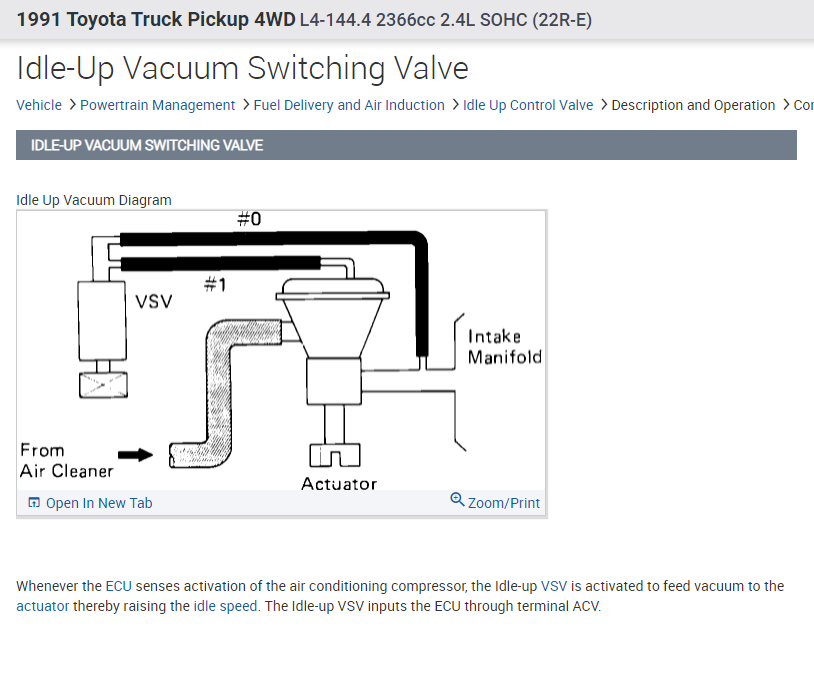 When engine is first started something is making the idle speed surge to fast back to normal. After a few minutes the idle speed is normal.I also notice this when the AC and heat is turned on. The vehicle is a 1991 Toyota truck 4cyl, 4x4 5 speed manual transmission with 140561 milage. Thanks