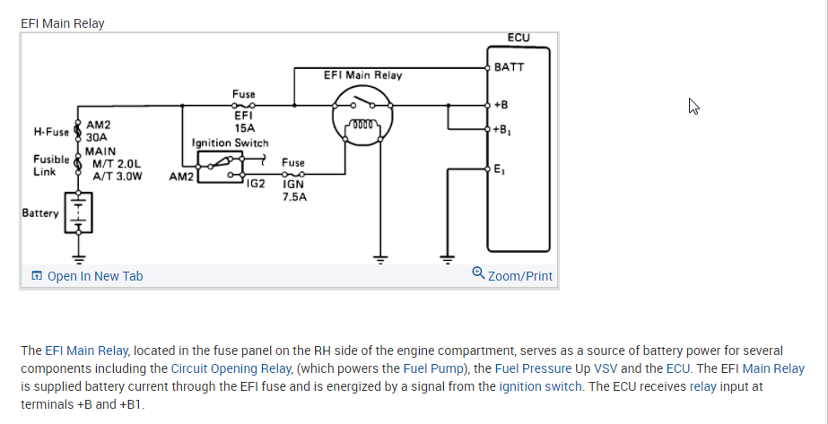 Has spark but fuel pump has no voltage and injectors wont fire. Where is the EFI relay? Im running snap-on shop key and its not showing me much at all on component locations