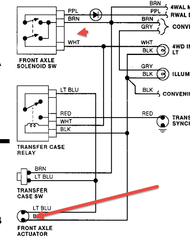 Will not come out of 4wd all the time. Front axle does not disengage. Has manual shift. Transfer case shifts. What can be cause?