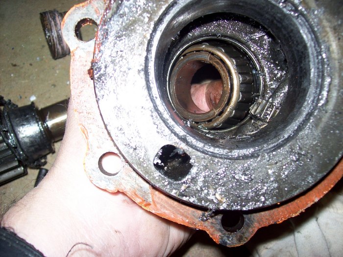 THIS IS WHAT HAPPENED TO MY TRANSFER CASE---THE SILICONE THAT BROKE LOOSE, CLOGGED THE OIL HOLES IN THE TAIL-SHAFT---WITH NO LUBE---THE 2 BEARINGS STARTED CHEWING UP THEN SUDDENLY LOCKED DOWNTHE SUDDEN STOP TORQUED THE TAIL-SHAFT, IN TURN THIS TORQUED THE MAIN CASE---THE CAST IRON CASE GOT A BIG CRACK POPPED IN IT
