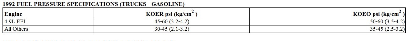 I am giving you the chart for fuel pressure specs as I did not know for sure which motor you have.